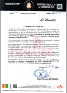 Le Ministre du Travail et de la Fonction Publique a annoncé, à travers un communiqué publié jeudi soir, une revalorisation des pensions servies par la Caisse Nationale de Sécurité Sociale (CNSS).